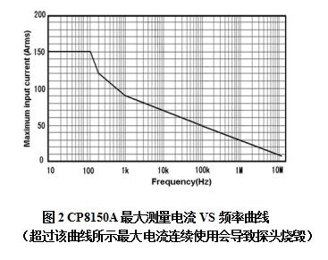 CP8150A钳口可夹住直径达20mm的导线,适用于大电流应用场合;可以测量150A的连续电流和300A的峰值电流,提供了12MHz的带宽;探头具有150A (100X)和30A (10X)两个量程可选择,10X量程用于小电流测量,分辨率高达10mA。