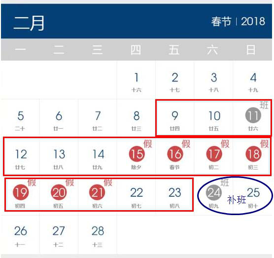 2 月 9 日(星期五)至 2 月 23 日(星期五)为放假时间、2 月 24 日(周六)开始上班。